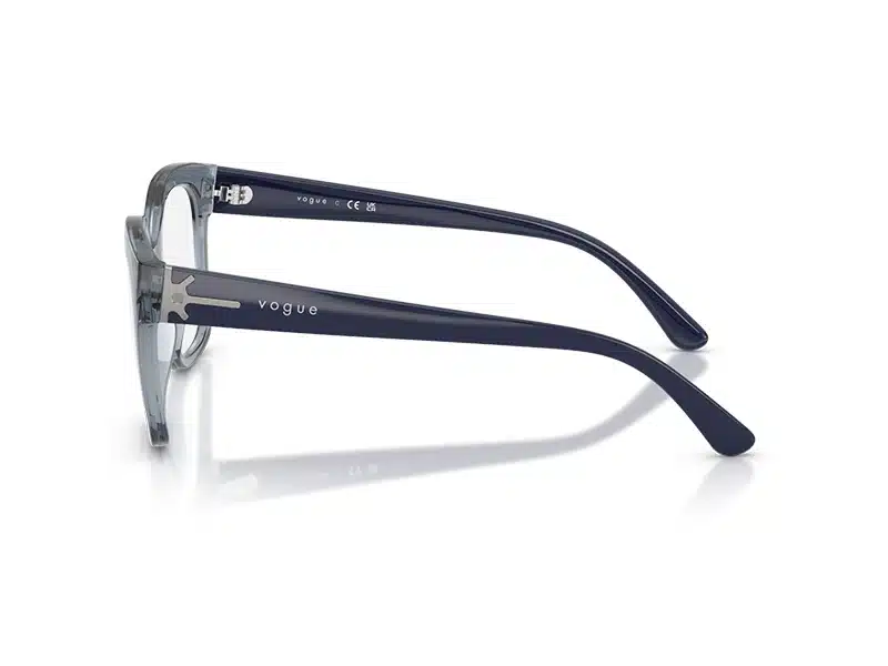 Grandes, llamativas e imposibles de ignorar. Estas gafas Vogue VO5691 cuadradas extragrandes, fabricadas en fibra de nailon ligera, con color azul transparente y varillas a todo color. Los detalles geométricos metálicos en las varillas les dan un toque moderno, rematados con el logotipo distintivo de Vogue Eyewear.