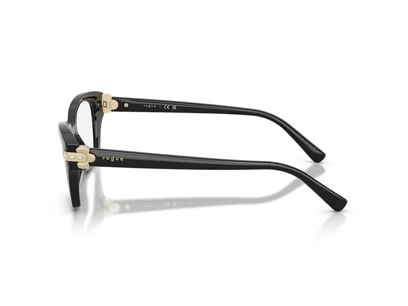 Estas gafas Vogue VO5704B estilo ojo de gato combinan una forma llamativa con detalles delicados y cómodos. Los detalles metálicos inspirados en flores y los toques de cristal añaden un brillo sutil en el extremo.